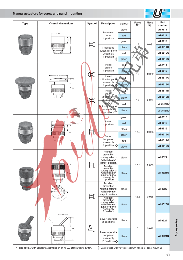产品标题:AI-3511|手动执行器,按纽|意大利UNIVER