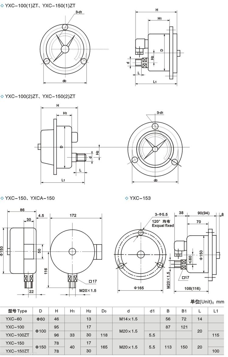 YXC150电接点压力表